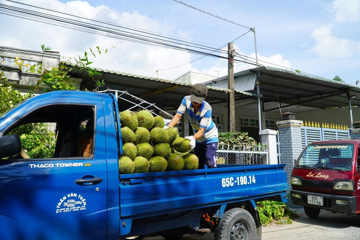 Theo Sở Nông nghiệp và Môi trường TP Cần Thơ, hiện khoảng 80% sản lượng sầu riêng trên địa bàn được cung ứng cho các doanh nghiệp ngoài tỉnh. Ảnh: Kim Anh.